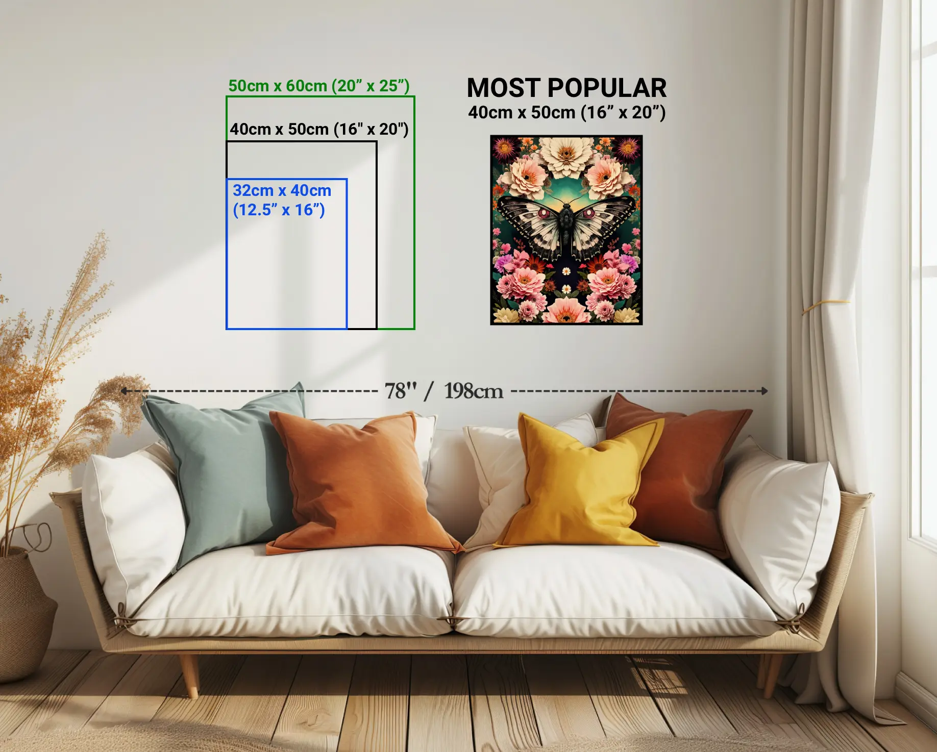 Small 12" × 16" or 30cm × 40cm, Medium 16" × 20" or 40cm × 50cm (Most Popular), Large 20" × 25" or 50cm × 60cm